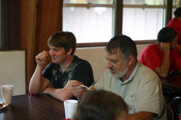 Unknown scout at left sits with Allen Piercy.